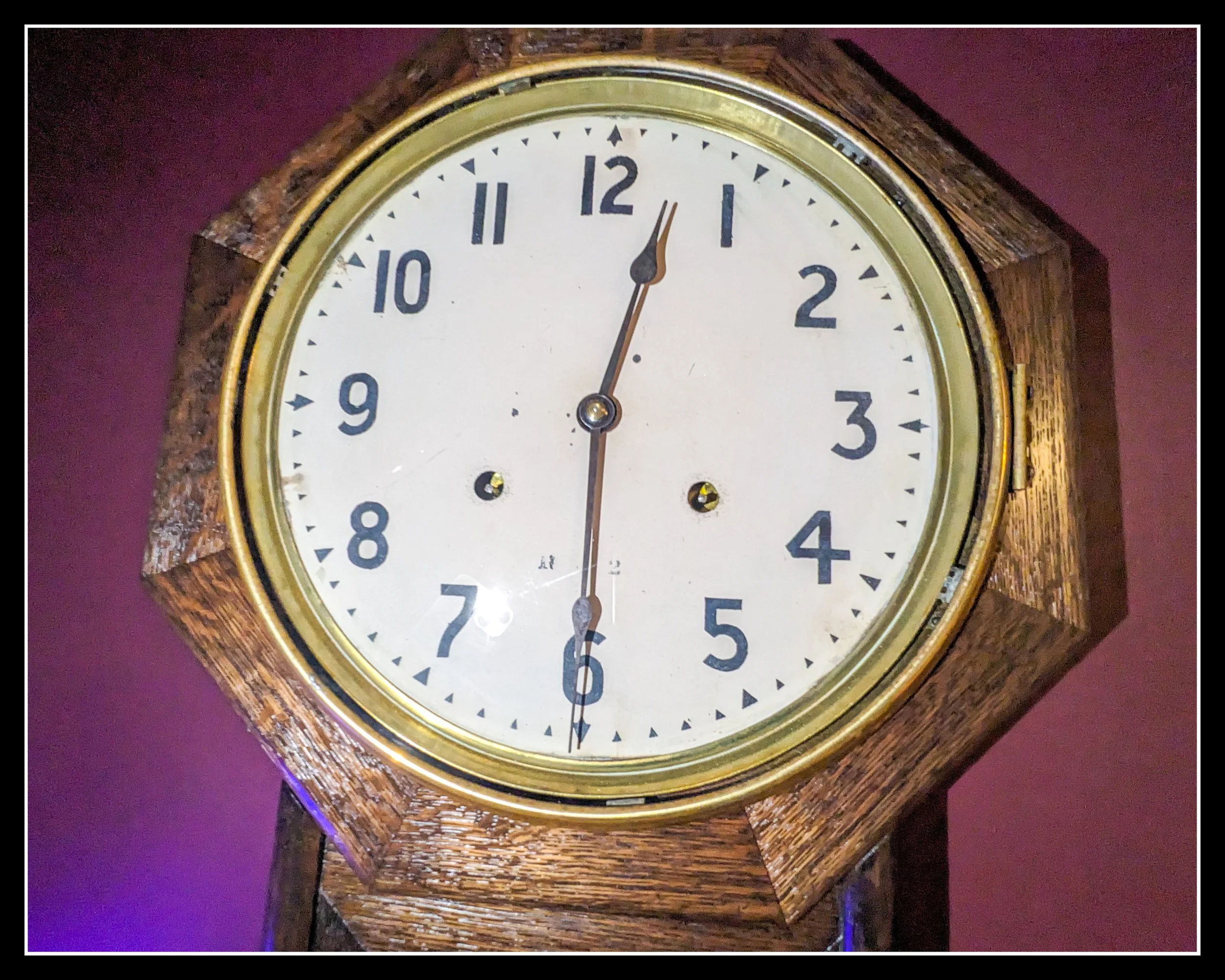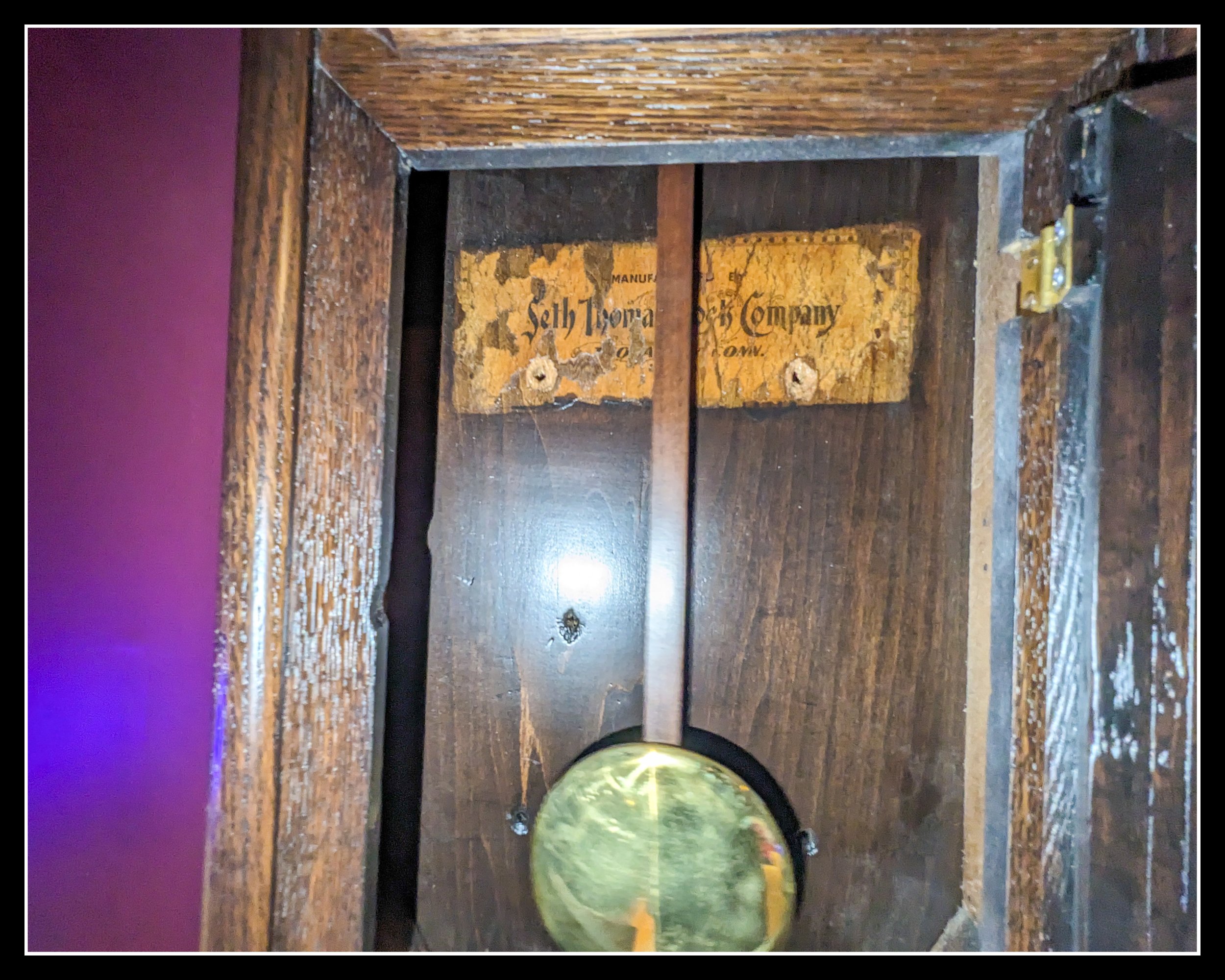 “The 1895 Seth Thomas school clock movement running before the dial was installed. This mechanism has been ticking for more than a century, and its steady beat is the sound behind every story written on this site.”
